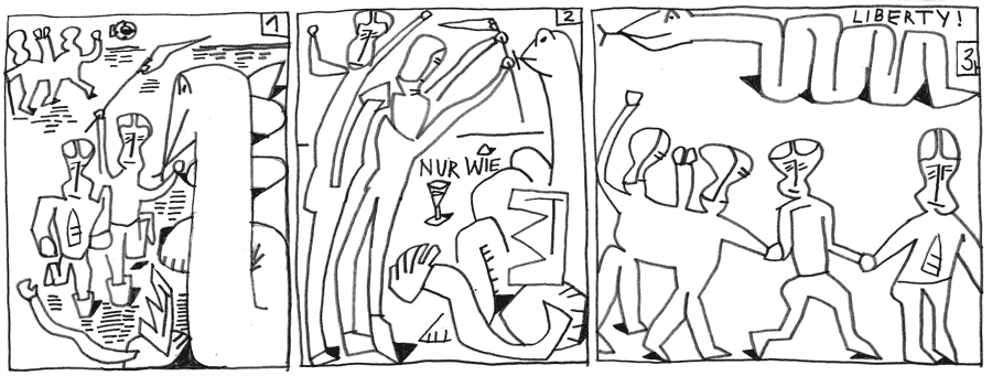| (11 / 25) Ja, jetzt staunen Sie sicher! Wie aber Liberty an Bord gekommen ist, ist eine andere Geschichte. Liberty ist in der Regel bei jeder Art von Ausgelassenheit dabei. By-Pass kann ihre Hilfe nur zu gut gebrauchen. Gemeinsam stellen sie sich den ziellos Fliehenden in den Weg. Deren innerer Rhythmus aus Anziehung und Abstossung hat nicht gestimmt. Liberty macht es den Ro`s vor. Schau! Jetzt gehts! Mühelos kommen die vier auseinander. |