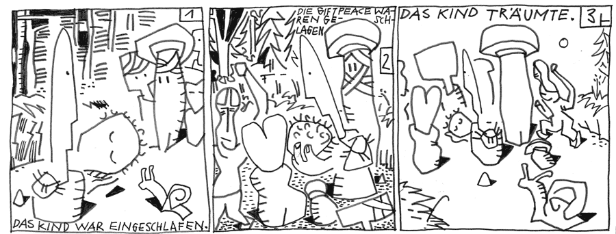 (14 / 15) Der Kampf war aus. Die Sanitäter der Aufständischen hatten viele Wunden zu verbinden gehabt. Erhobenen Haupts gingen die Geschlagenen auf einem Waldweg zurück. Dort kam ihnen Woo-Fi mit dem schlafenden Kind im Arm entgegen. Sie nahmen die beiden in ihrer Mitte auf. Die Zeit würde kommen. Alles hat seine Zeit. |