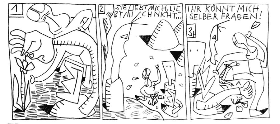 | (19 / 56) Vulkana begreift, worum es den Dreien geht. Offenbar waren alle in Vulkana verliebt und jeder wollte das Blumenorakel ganz für sich alleine haben. Um die Pflanze vor noch größeren Schaden zu bewahren, zeigt sich Vulkana. „Ihr könnt mich selber fragen!“ |