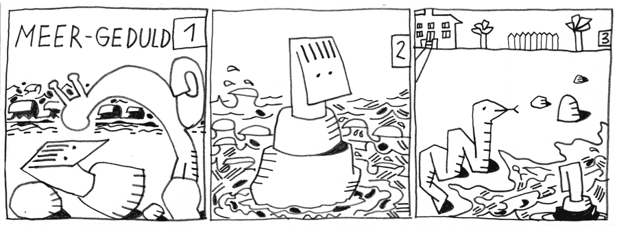 | (5 / 37) Melo hat bei seiner Watt-Wanderung die Flut vergessen. Wie eilig er es auch gehabt hatte, mit sich und seinem Verhältnis zur Politik ins Reine zu kommen, jetzt war er stundenlang vom Festland abgeschnitten. Er kauert auf einem Findling, der über das Wasser hinausragt, und lässt sich von den Wellen Nachhilfe-Unterricht in Geduld geben. |