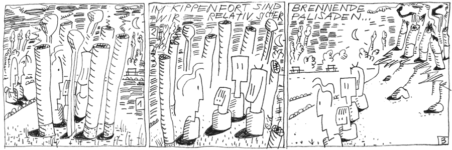 Die Kids arbeiten am Kippenfort auf dem Woodstock. Der Mond steht schon am Himmel. Es wird Zeit, in den Musik-Bunker zu gehen.