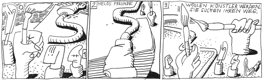 Steiner und Strehl freuen sich über die unerwartete Unterstützung. Zu dritt können sie den Hügel noch lange Zeit halten. Blatt um Blatt gewinnen ihre Visionen an Boden. Doch die Übermacht ist schließlich zu groß.
