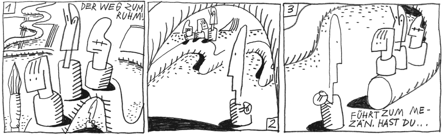ist sinnlos geworden. Die Drei nehmen ihre Bilder unter den Arm. Sie brechen