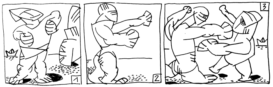 Die Mhkis lassen Melo keine Bedenkzeit und prügeln gleich auf einander ein.So wie`s ausschaut ist das Catch as catch can. Macht das Spaß? Eigentlich ist Melo überflüssig.