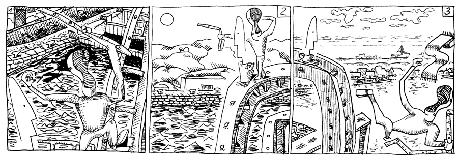 auf dem Berg. Im Hafen jenseits des Flutkanals, der zwanzig Meter über