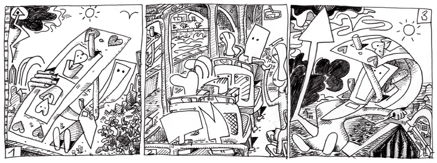 (39 / 281) Der Reli gleitet aus dem Schatten des Rathauses in den offenen Luftraum. Aber was war das? Ein heiterer Himmel und ein Gewitter, das gegen die Regeln verstößt! Die Blitze kommen von unten. Damit war nicht zu rechnen. Pech gehabt Reli. Das wird ein schwieriger Flug! Die Kids staunen nicht schlecht, als sie auf der Brücke sind und der Reli als Drachenflieger an ihnen vorüberzischt. Relis Luftfahrzeug wird in die Höhe gesaugt und auf einen anderen Kurs gebracht. Reli Ade! |