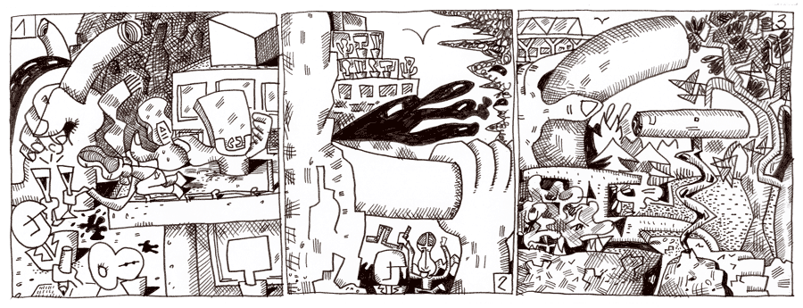 (60 / 281) Haben wir noch genug Zeit? Wenn man sich beeilt, könnte man es noch schaffen, bevor die Kids kommen. Die Röhren passen. Mies, der Architekt, ist hocherfreut über den Auftrag. Handy und Hendy, die nicht wissen, welche Rolle sie bei dem Ganzen spielen, applaudieren und Airman, der Journalist, schreibt alles, was er sieht und hört, mit spitzem Stift auf. Doch wenn Ihr von ihm wissen wolltet, was mit Vulkana, Woo-fi und den Kids geschehen ist, würdet Ihr vergebens fragen. Wo steckt denn Omar Sheriff? Ist er wieder an seinem Schreibtisch? Die Rechte und die Linke Hand arbeiten ausnahmsweise zusammen. Unter dem Applaus der Bevölkerung schieben sie die Röhre durch den Berg. Oben über der Klippe wird sie am Al-Kreuch-Gymnasium festgemacht.Vielleicht kann sie heute mittag schon benutzt werden. |