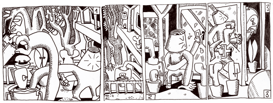 (84 / 281) Auch für den Strär, der um mehrere Ecken denken kann, ist es nicht so einfach, mit dieser Situation zurechtzukommen. Auch er muß feststellen, dass von etwas zu träumen ganz anders ist, als es dann zu machen. Die einzelnen Schritte bis zum strahlenden Ende können nämlich für sich betrachtet ziemlich finster sein. Es sieht so aus, als wenn jemand etwas geklaut hätte, was man auch borgen nennen kann. Aber es ist nichts geklaut worden, wenn man die Sache vom Ende her bestrachtet, denkt der Strär und hat das Gefühl, sich dabei fürchterlich verrenken zu müssen. Die Gruppe klettert auf den Fenstersimsen zum oberen Rutschen-Ende zurück. Der Schlüssel passt. Schicksal nimmt Deinen Lauf. |