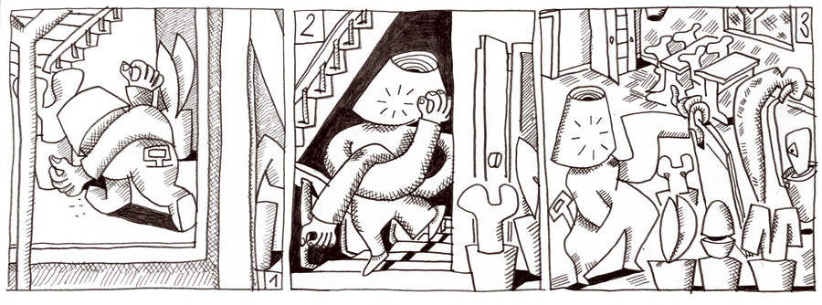 (85 / 281) Jetzt sind alle drin. Die Türe fällt hinter dem letzten zu. Der Stähr hat den Schlüssel in seine hintere Hosentasche gesteckt. Wo soll`s denn hingehen? Bis auf die Leser kennen alle den Weg. Jetzt dämmert`s auch dem Leser. Im ersten Stock liegt das Klassenzimmer der Kids. Beim Strär legt sich der Klau-Krampf allmählich. Er kann wieder Sachen in die Hand nehmen, ohne das Gefühl zu haben, Unrecht zu tun. Das ist allerdings sein eigener Zeichenblock, den er da hält. Zugegeben, um in die Schule zu gehen, ist das eine ungewöhnliche Zeit. |