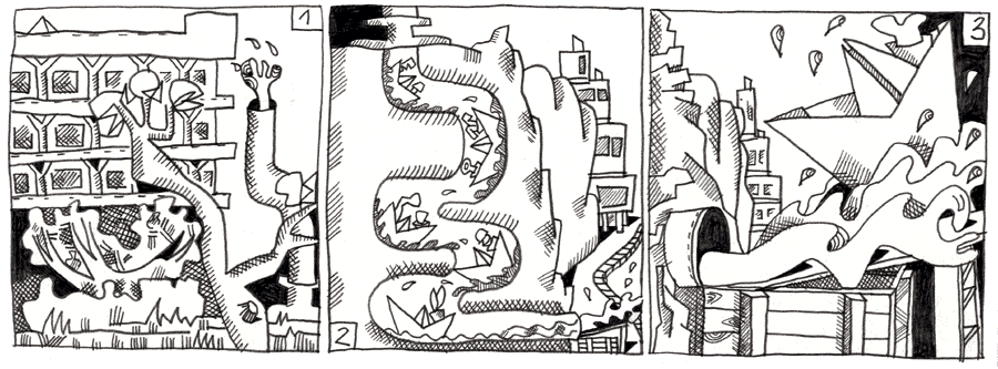 (98 / 281) Das Naßdach ist trocken. Die letzten Tropfen fallen in der umgebogenen Röhre. Die Melo-Such-Mannschaft durchquert mit der berechneten Geschwindigkeit den Berg. Xe verlässt jetzt auf dem Wasserschwall die Rutsche. Er schießt plangemäß über die Kante des Sprungbretts in den dunklen Himmel. Die Pseudo-Nach empfängt ihn. Das Bild von Melos Verschwinden auf einer Woge aus Veritas-Wasser wiederholt sich. Einmal. Zweimal. Dreimal. Viermal. Viele Mal. Strär, Du hast Recht gehabt! |