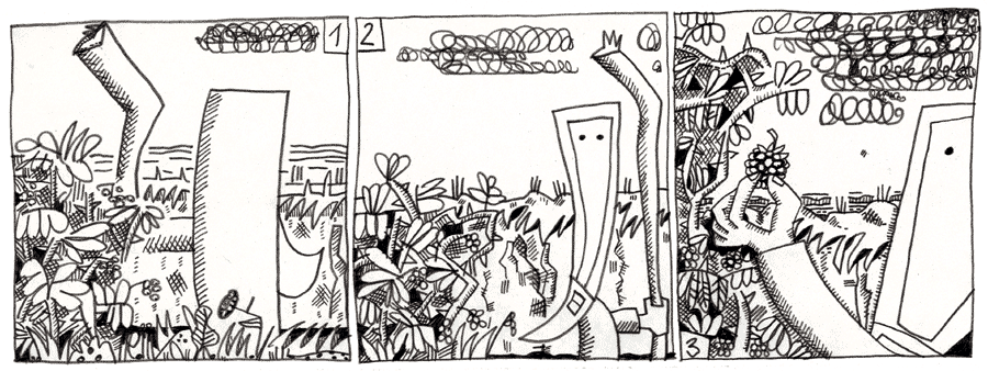 (102 / 281) Unbekannte Weite. Was ist das! Die Augen des Hungrigen leuchten auf. Die Uferböschung ist ab hier von einem Beeren-Dickicht gesäumt. Schmackhaft, nahrhaft und sättigend. Die Natur hat dem Reli den Tisch gedeckt und er lässt sich nicht lange bitten. Wie lange war er denn gewandert? Ist es mittags? Ist es schon wieder abends? Der Reli hat kein Zeitgefühl mehr. |