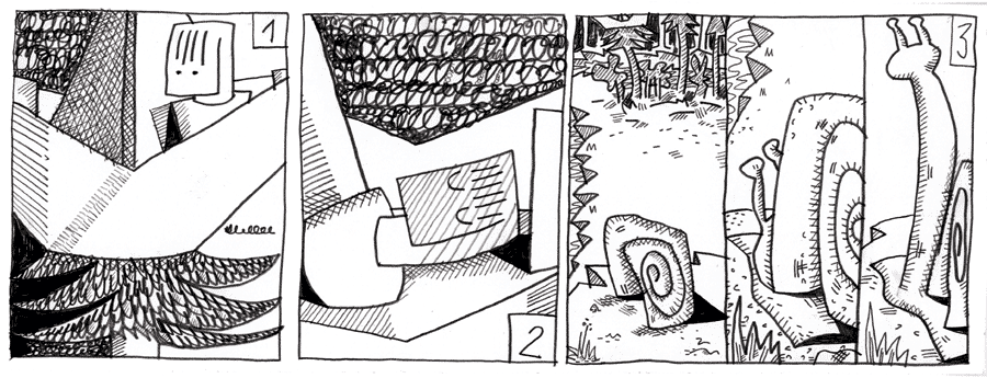 (117 / 281) Das ist ja ein tolles Abenteuer. Soetwas erlebt man nicht alle Tage. Es kommt da ganz gelegen, wenn es früher Nacht wird und Melo sich zur Erholung schlafen legen darf. Eigentlich viel zu früh. Wie wir wissen, ist es nur eine Pseudo-Nacht, deren Dunkelheit von den Auspuffgasen der Bohrmaschine stammt. Aber macht das was? Wie bei einer echten Nacht wird es nach einer Weile auch wieder hell. |