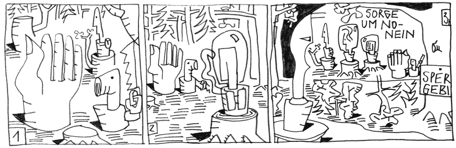 | (17 / 56) Feierstunde im Nadel- und Blätterwald von Everywen. Der Wergler präsentiert die Säge, als die Öffentliche Hand die Wald-Halla betritt, um die Ehrung der Kids durchzuführen. Nur Vulkana ist nicht bei der Sache. Sie macht sich um No-nein Sorgen, die sie nirgendwo mehr sehen kann. Ein Verdacht keimt in ihr auf. Waren nicht drei aus dem All zurückgekommen? Wo aber war der Dritte, Total. Hat Total etwas mit No-neins Verschwinden zu tun!? |
