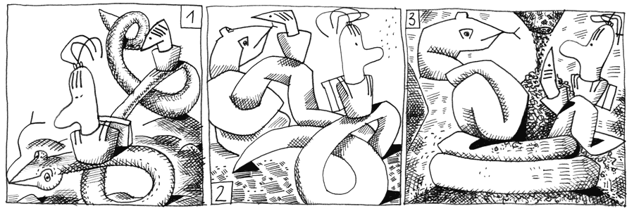 | (11 / 92) Die kleine Karawane dringt in die tiefste Tiefe der Wüste vor. Was für ein Haufen Sand! Sie sehen kaum noch die Hand vor Augen. Der Sand scheint von allen Seiten auf sie einzurieseln. Sie haben das Gefühl, in einer riesigen Sanduhr zu sein. Und wie der Leser erkennen kann, sind sie das auch. Die herabströmende Sandsäule ist ein eindeutiger Hinweis. |