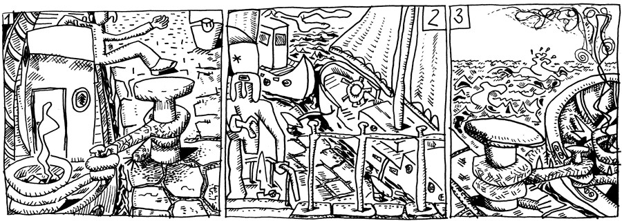 | (25 / 92) Lehmget Walters Laune hat sich gebessert. Ich lade Sie in mein Stammlokal ein, sagt er zu Woo-Fi und geht unternehmungslustig an Land. Hätten die Männer doch nur einen Blick zurückgeworfen! Aus der Taurolle an Deck ringelt sich ein Rauchfaden in die Höhe. Der Zigarettenstummel war nicht weit genug geflogen und hatte jetzt das Haltetau in Brand gesetzt. |
