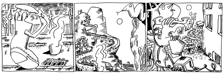 Schlagstock. Der Junge sucht das Weite. Der Regen hat aufgehört. Er
