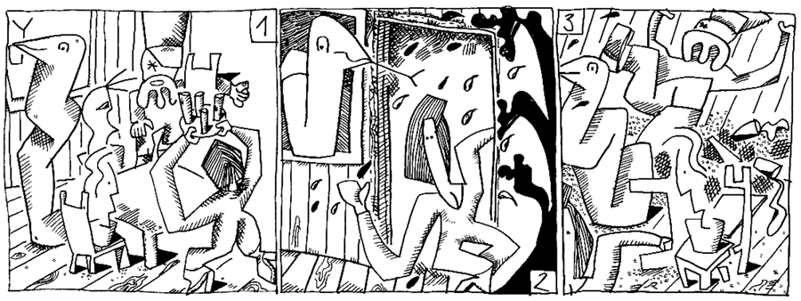 | (79 / 92) Die Besatzung des Wandervulkans hat sich in das Wärterhäuschen zurückgezogen. Litta serviert auf einem Tablett Erfrischungen. Die Geräusche der Wellen, die von außern hereindringen, sind stärker geworden. Als Litta an die Türe tritt, um nach dem Rechten zu sehen, erfüllt ein gigantisches Knirschen die Luft. Der Berg bebt. |