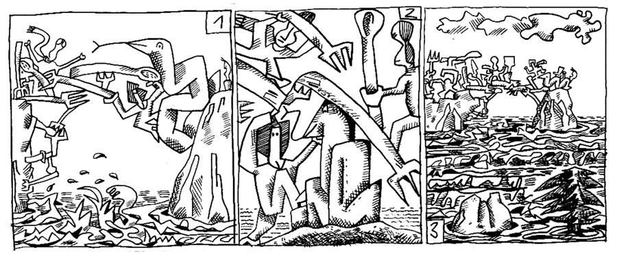 | (84 / 92) Jede Hand ist gefordert. Das zu erwartende Wiedersehen mit ihrem Bruder treibt Litta zu Höchstleistungen an. Schon erreichen die ersten Besteckträger den Vulkanrand und werfen das Metall in die Tiefe. Mauma koordiniert die Aktivitäten. Die größte Guß-Plastik der Geschichte nähert sich ihrer Vollendung. |