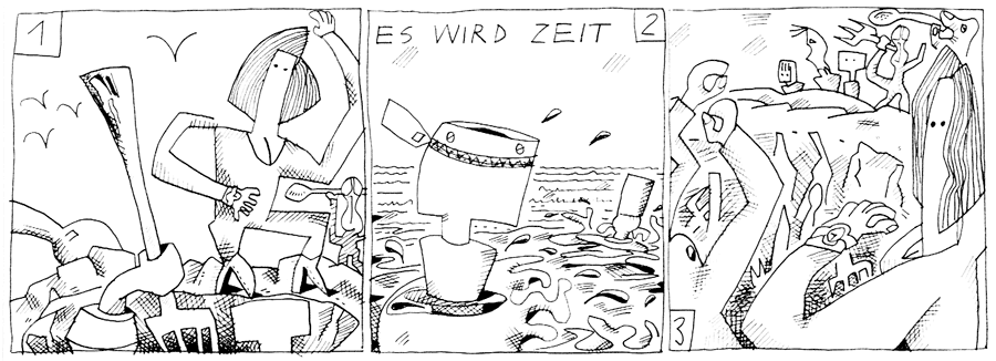 | (87 / 92) Litta Mauma sieht nervös auf ihre Uhr. Die Zeit verrinnt, im Inneren des Vulkans klirrt Metall, in 57 Minuten wird er sich erhitzen und ausbrechen. Wie jede Woche und diesmal zur Verbesserung der Welt. Aber was machen nur Lehmget und Wies dort unten im Wasser? Es wird Zeit! Wir müssen uns aus der Gefahrenzone entfernen. Dass Lehmget Walter! |