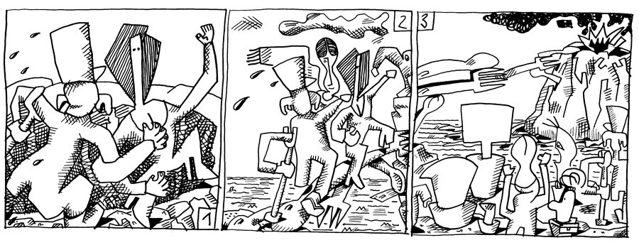 | (89 / 92) Litta nimmt Lehmgets Arm und reißt den altern, tropfnassen Herrn hinter sich her. Sie sind die letzten auf der Besteckbrücke. Kaum haben sie die gegenüberliegende Klippe erreicht, bricht auch schon der Wandervulkan aus. Wird alles erwartungsgemäß verlaufen? Haben wir auch nichts vergessen. Jetzt ist es zu spät! |
