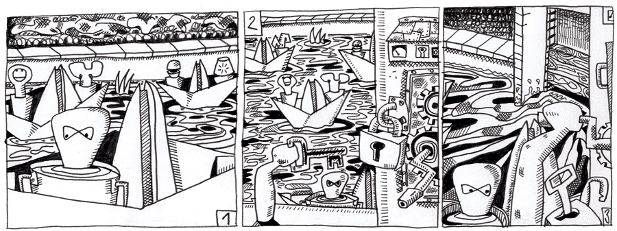 (91 / 281) Jan ist sehr nervös. Hoffentlich passt der Schlüssel? Hoffentlich verliert sein Arm nicht die Nerven! Alle atmen auf. Aber eigentlich war es garkeine Überraschung. Der Hauptschlüssel passt in einem ordentlichen Haus überall. Der Arm dreht am Schleusenrad. Es lässt sich ohne besondere Beschwernis drehen. Das Balkentor geht in die Höhe, als wäre das die Regel. Jan kann sich nicht erinnern, jemals in seiner Schulzeit jemals auf dem Dach gebadet zu haben. |