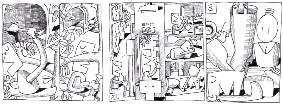 (175 / 281) Was macht By-Pass? Er ist immernoch nicht wach. Trotzdem weiß er mit dem Instinkt des Schlafwandlers, was zu tun ist. Er entfernt sein Paddel aus der Spielkarte und macht sich auf den Heimweg. Er geht durch das Rathaus, durch den Hintereingang, den die Kids als Abkürzung zum Busbahnhof nehmen. Schließlich gelangt er zum Al-Kreuch-Gymnasium. Er betritt seine Wohnung, betritt sein Schlafzimmer. Einen Meter vor seinem Bett rutscht er auf dem Bettvorleger aus. Er schlägt sich beim Hinfallen das Paddel gegen den Kopf. Betäubt bleibt er liegen. So finden ihn die Staatsstiefel. Das sieht ganz nach einem Überfall aus. Hier ist das Opfer! Wer ist der Täter? Bestimmt die Kids und die Neuen. Jana Waid kann es nicht glauben. Seit wann schreibt Omar Sheriff Krimis! |