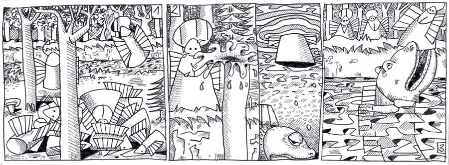 (177 / 281) Wie aber geht es den Baldachin-Engeln? Es dauert eine Weile, bis die ganze Kolonne zum Stehen kommt. Das ist knapp vor dem Hohlweg, in dem mittlerweile ein Fluß fließt. Die Engel haben die Orientierung verloren. Gerade waren sie noch im Himmel. Jetzt sind sie im Wald. Was wird The Pubst von ihnen denken. Sie wissen glücklicherweise nicht, daß The Pubst nur als Doppeldecker in der Luft bleibt. Sonst müßten sie deswegen Schuldgefühle haben. Sie haben eigene Probleme. Eine Engelin fällt ins Wasser. Das geschieht zufälligerweise dort, wo der Lachs zum Schlafen auf dem Grund liegt. „Träum ich oder wach ich“, denkt er, als er aufschaut. Er verwechselt die Engelin mit einer Fliege. Die Ähnlichkeit ist ja auch groß. Die Unterschiede zeigen sich erst später. |