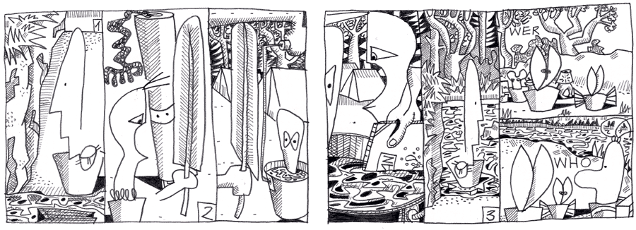 (198 / 281) Woo-Fi tritt an das Wasser. Soll ich es wagen? Bis zum ersten Stein ist es ein kleiner Sprung. Vulkana zeigt Herrn Strie und den anderen ihre Feder und erklärt, was sie vorhat. „Ich brauche Tusche, Herr Strie können Sie mir helfen.“ „Aber sicher“, sagt dieser, „Tusche macht man aus Ruß, und mein Schornstein ist voll davon“. Jan van der Aimer ist beeindruckt von der Idee, dass Vulkana die Abenteuer der Everywener im Schwebenden Wald aufschreibt. Er überlässt ihr seine wasserdicht verpackten Hefte. Hups! Woo-Fi ist gesprungen. Jetzt der nächste Stein. Bis zu diesem ist der Abstand größer. Das fremde Wesen rührt sich nicht vom Fleck. Xe geht zu ihm. „Wer bist Du ?“, fragt Xe. Er bekommt keine Antwort. „Das muß ein Ausländer sein“, sagt Hier-wohne-ich, „und mit Ausländern kann man sich in der Regel auf Änglisch verständigen... Who are you?“ fragt Hier-wohne-ich. „An angel“, erwidert das Flügelwesen. „Da staunt Ihr!“ triumphiert Hier-wohne-ich. |